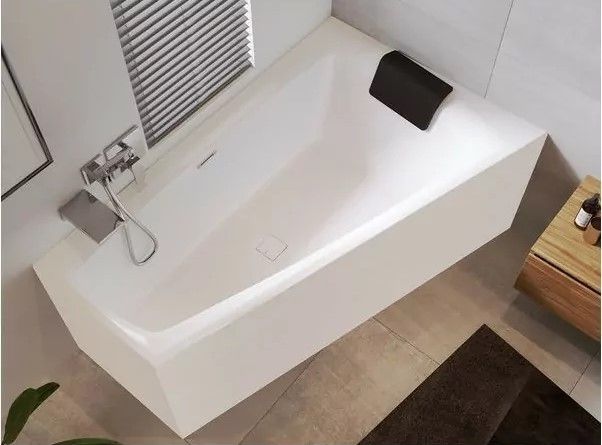 Отдельно стоящая асимметричная ванна RIHO Still Smart 170x110 L PLUG & PLAY, из глянцевого белого акрила, которая имеет очень удобную и просторную лежачую сторону. Ванна не занимает много места в ванной комнате благодаря скошенной форме ножной части.