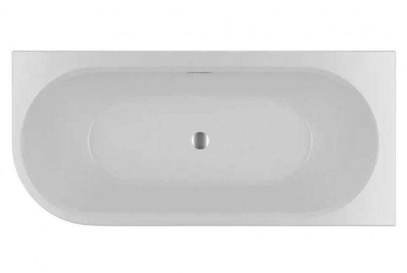 Белая глянцевая ванна поставляется в стандартной комплектации с хромированным сливом переливом