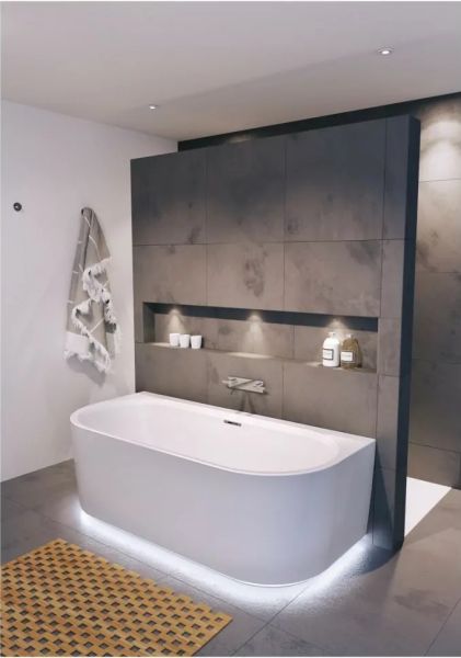 Щелевое отверстие перелива может быть использовано для встроенного наполнителя ванны Riho Fall (приобретается отдельно)