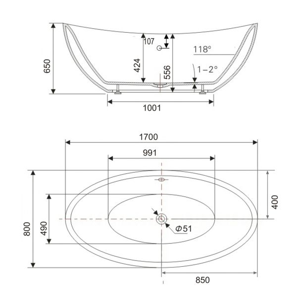 Акриловая ванна Swedbe Vita 8805 170x80см белый купить