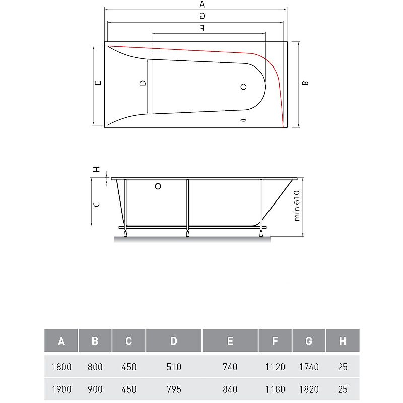 Высота ванны на каркасе: 61 см.