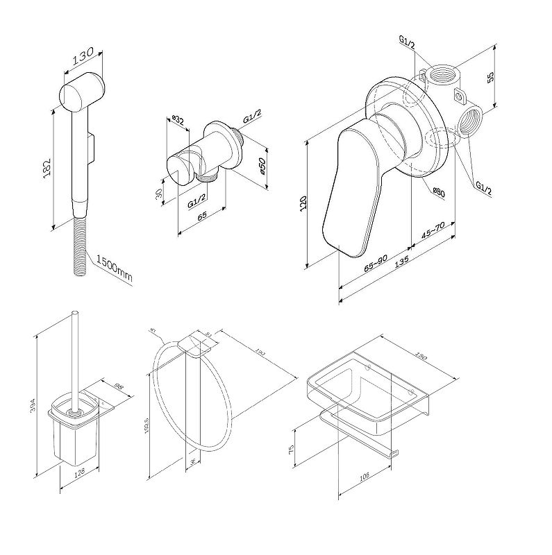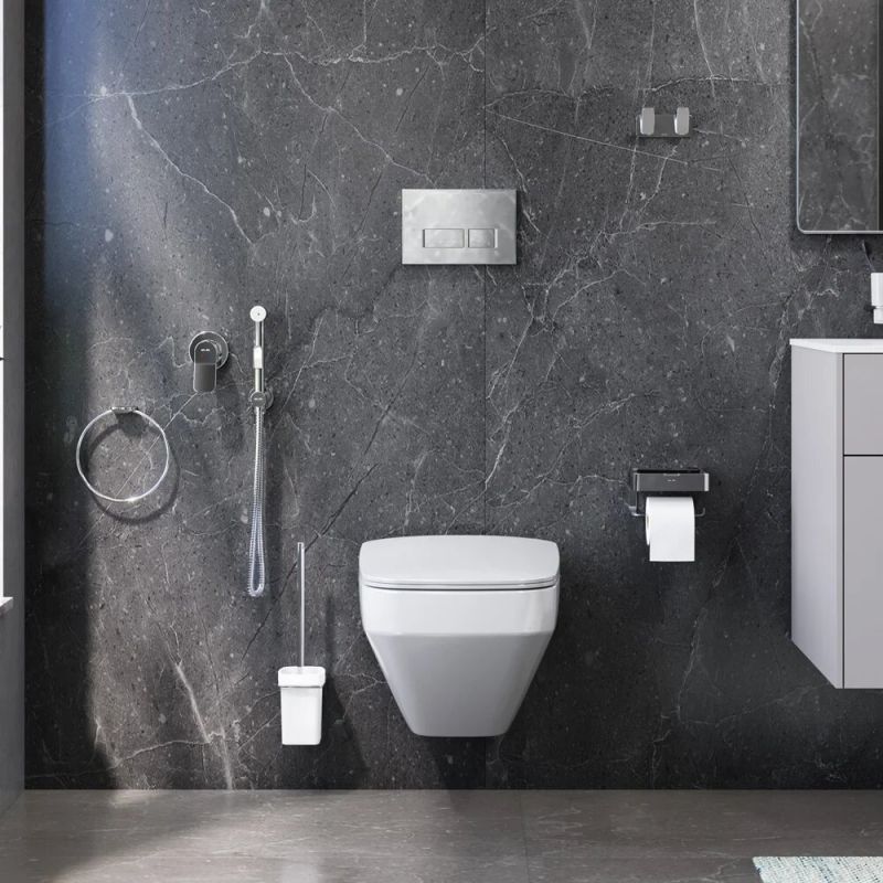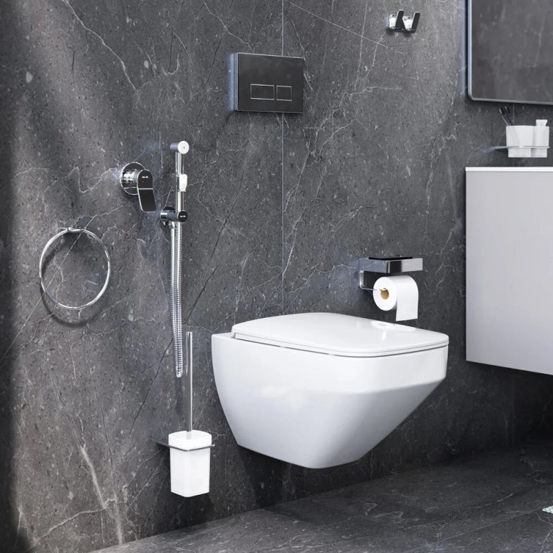 Гигиенический набор для скрытого монтажа со смесителем для душа:Гигиенический душ:Изготовлен из ABS-пластика. Многослойное хромникелевое покрытие устойчиво к царапинам и потускнению, сохраняет первоначальный цвет и блеск на протяжении всего срока службы.