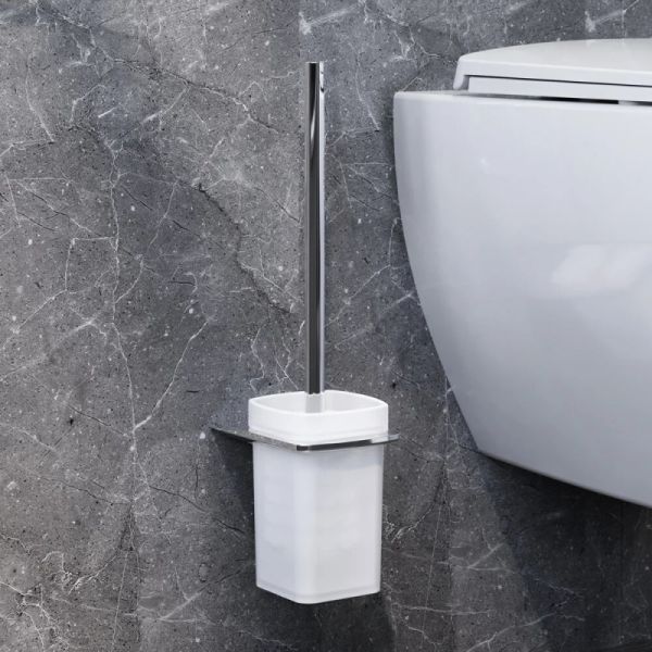 Стойка с туалетной щеткой:Материал: сплав металлов. Глянцевое хромированное покрытие приятно на ощупь, устойчиво к помутнению и бытовым повреждениям, сохраняет первоначальный зеркальный блеск на протяжении всего срока службы.