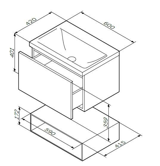 M90FHX06021WG GEM, База под раковину, подвесная, 60 см, 1 ящик push-to-open, цвет: белый, глянецДАННЫЕ ОБ ИЗДЕЛИИ:Ширина изделия(мм) 600