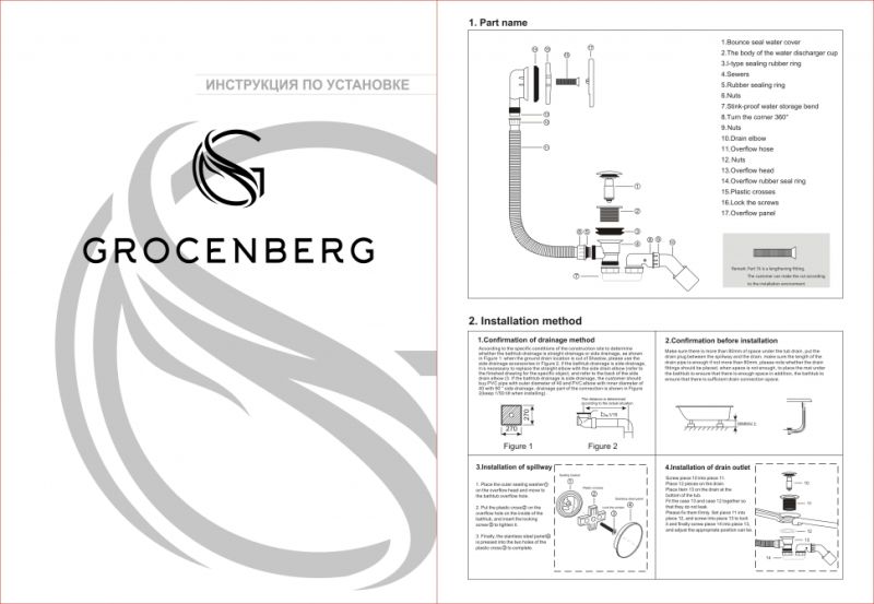 Слив-перелив для ванны GROCENBERG купить в интернет-магазине "Gidro-butik" с гарантией от производителя Большой выбор.  Низкие цены Быстрая доставка по Москве и Московской области.