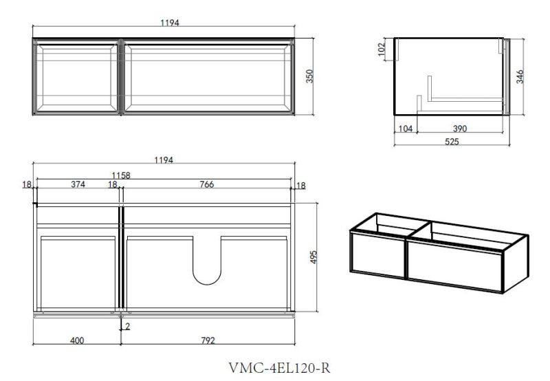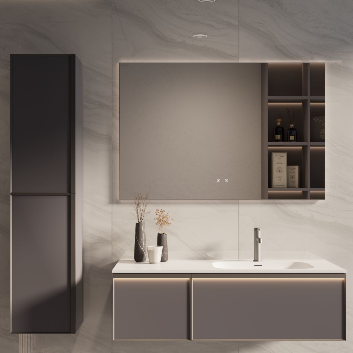 База под раковину Vincea Elise 1200 подвесная, правая, 2 выкатных ящика soft-close, серый матовый