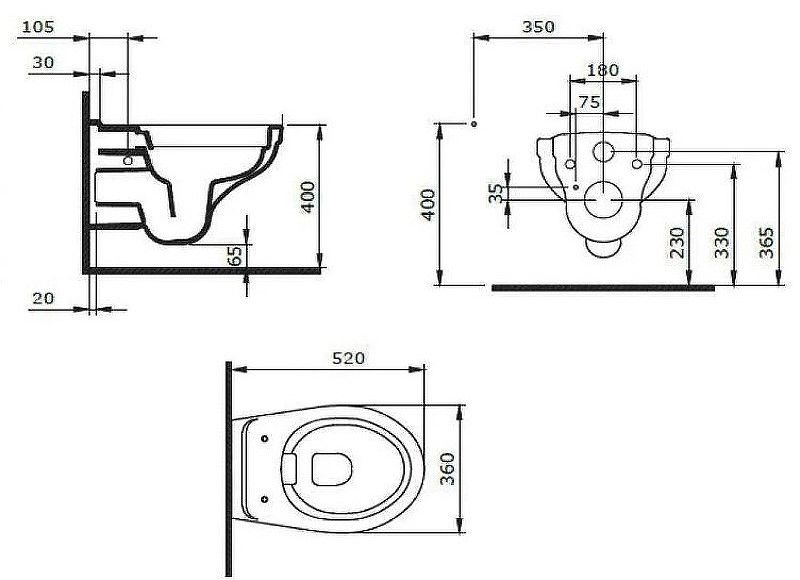 Межосевое расстояние под крепежные шпильки унитаза 18 и 23 см.