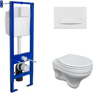 Комплект унитаза с инсталляцией Berges Wasserhaus Atom 042435 с сиденьем Микролифт и Белой клавишей смыва.Характеристики:Унитаз Albit S Rimless:Цвет: белый.