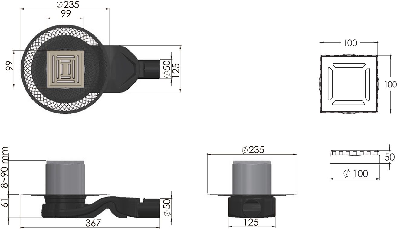 Решетка толщина 1,5мм, нержавеющая сталь AISI 304 Горловина трапа, пластик Фланец трапапа с переходником, РР Монтажная заглушка, PP Самопромывной S-образный сифон PP: горизонтальный выпуск D50 H60, пропускная способность 42л/мин, монтаж 360° Монтажный ключ, пластикНемецкий душевой трап Berges Wasserhaus Platz Uno – рациональное решение для отвода воды в канализацию. Система обеспечивает эффективную очистку сточных вод от крупных механических загрязнений, а также защищает душевое пространство от неприятного запаха из канализационной системы. Трап изготовлен из нержавеющей стали, которая обеспечивает высокую прочность и долговечность конструкции. Изделие регулируется по высоте для более простого монтажа.