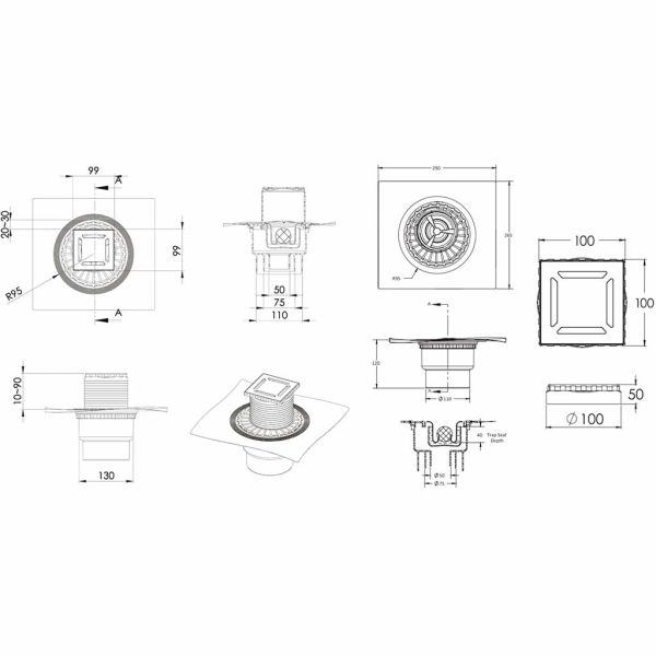Душевой трап Berges Wasserhaus Zentrum Antik 090464 10х10 Матовый хром
