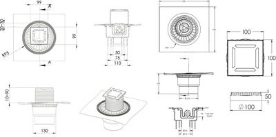 Душевой трап Berges Wasserhaus Zentrum Uno 090471 10х10 Матовый хром купить