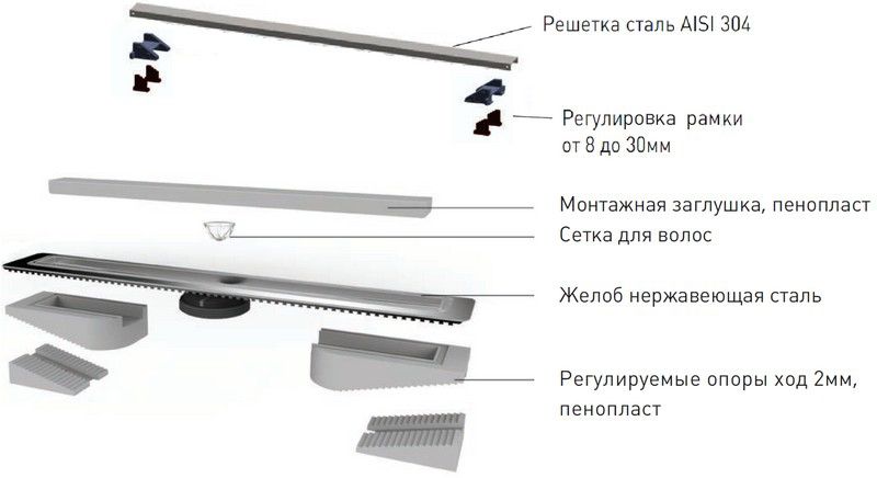 Berges Wasserhaus C1 Norma 80 090039 Душевой лоток Матовый хром купить