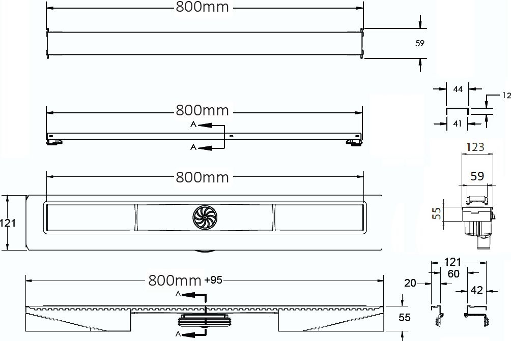 Berges Wasserhaus C1 Norma 80 090039 Душевой лоток Матовый хром