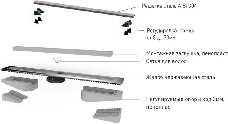 Душевой лоток Berges Wasserhaus C1 Brise 090129 40 Матовый хром – является надежным дренажным устройством в составе современной системы водоотведения. Страна изготовления – Германия, коллекция C1 Brise.Berges Wasserhaus C1 Brise 090129 40 Матовый хром выполнен в одном корпусе с гидрозатвором, благодаря чему достигается герметичность изделия и создается надежный барьер против запахов из системы канализации. Прямоугольную форму решетки сантехнического устройства Berges Wasserhaus можно удачно обыграть при установке устройства вдоль стен, рядом с перегородкой и т.д. Видимая часть конструкции изготовлена из полированной нержавеющей стали, которая отлично сочетается с другими элементами коллекции C1 Brise. Габаритные размеры изделия составляют 49.50х12.10 см при максимальной длине и ширине внешней части 40.0х4.4 см. Дренажное устройство производства Berges Wasserhaus имеет минимальную высоту – тем самым достигается простота установки путем встраивания в пол ванной. Конструкция имеет горизонтальный выпуск для прямого вывода стоков в канализацию. Высокая пропускная способность делает лоток Berges Wasserhaus C1 Brise 090129 40 Матовый хром одним из лучших вариантов при эксплуатации как в частных домовладениях, так и помещениях коммерческого назначения – банях, душевых спортзалов и т.д. Пластик, из которого сделан патрубок и элементы слива дренажного устройства Berges Wasserhaus, не боится вредного воздействия влаги, бытовой химии, высокой температуры и прочих разрушающих факторов. Хром матовый цвет наружной решетки лотка Berges Wasserhaus прекрасно сочетается с другими элементами коллекции C1 Brise.