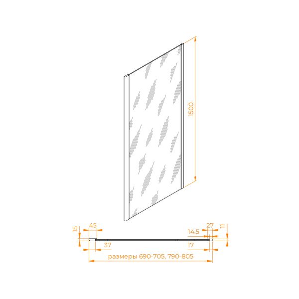 Боковая панель RGW Z-050-4 комплектуется с моделями высотой 1500 мм и цветом профиля «черный»