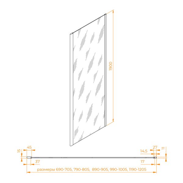 Комплектуется с моделями высотой 1900 мм и цветом профиля «хром» Подробнее