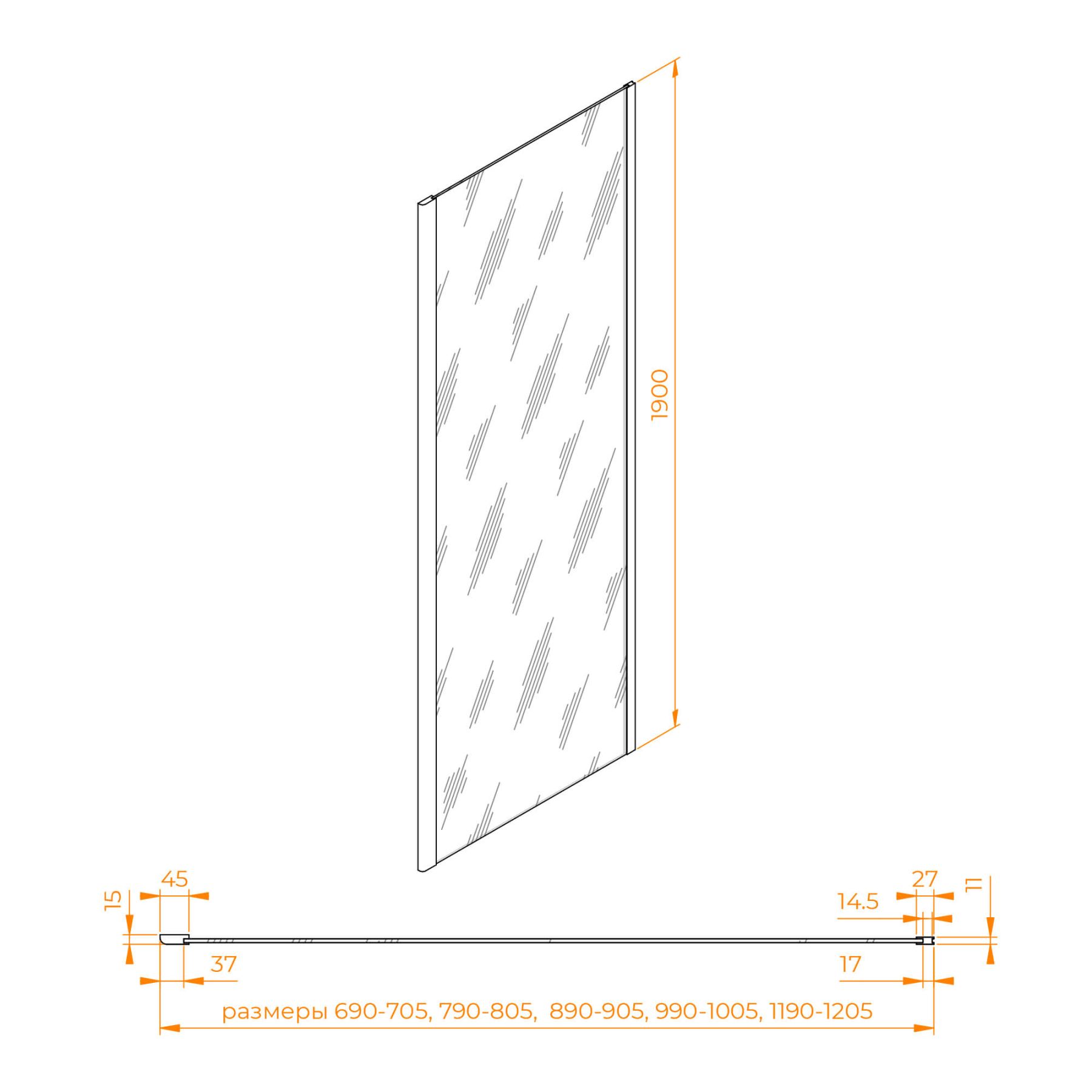 Комплектуется с моделями высотой 1900 мм и цветом профиля «черный»