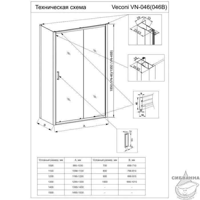 Боковая панель Veconi KP-03B, 800х1950 черный, стекло прозрачное купить