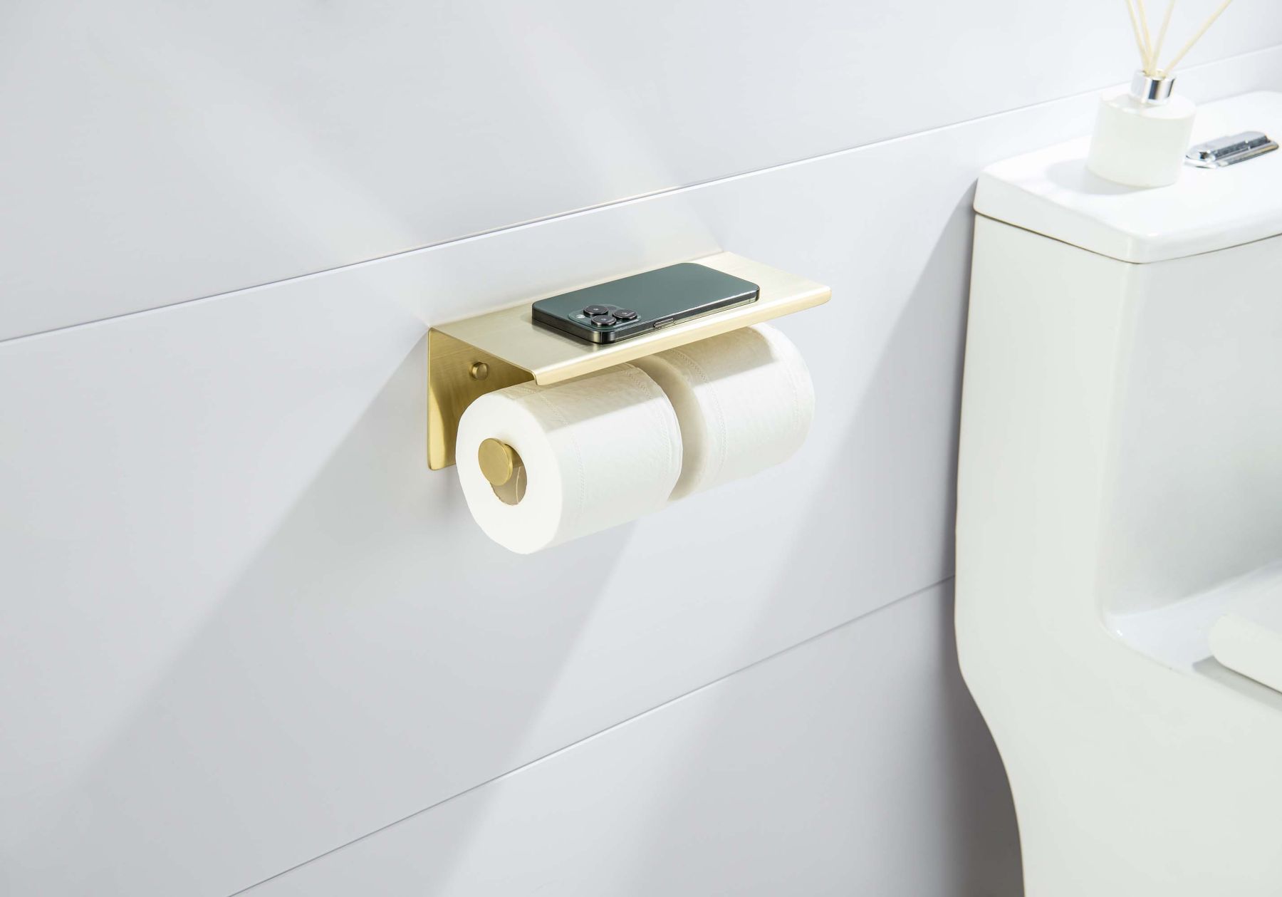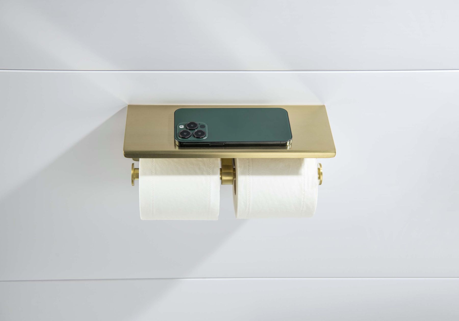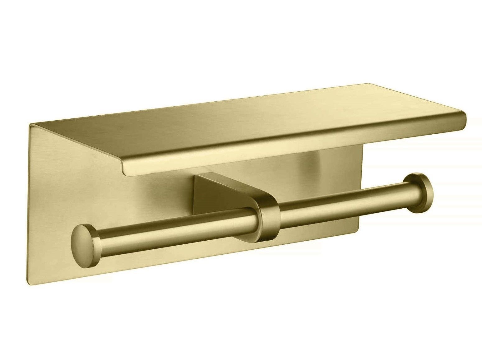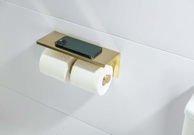 Бумагодержатель двойной с полкой Aquatek Оберон AQ4909BG шлифованное золото
