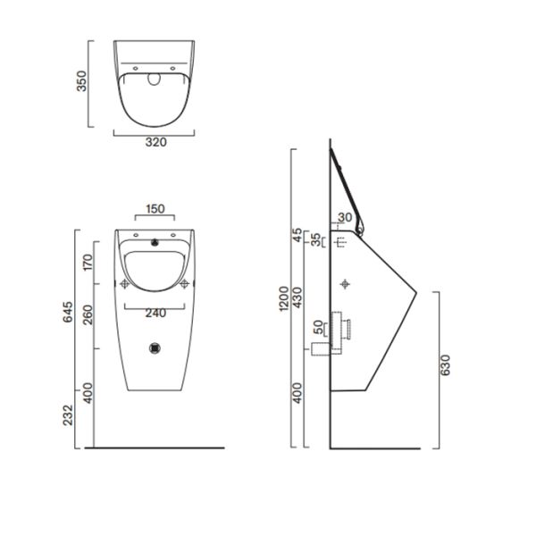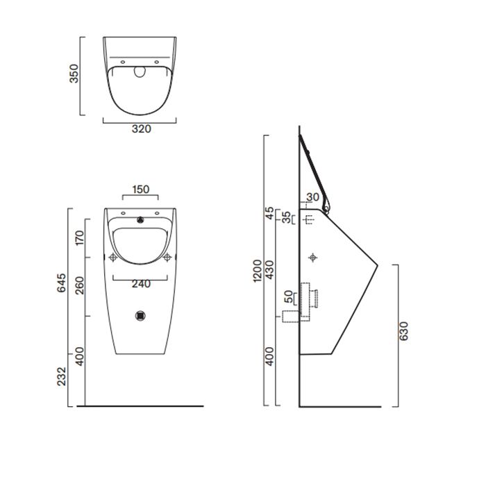 Catalano Писсуар c отв. под крышку Rimless 64x32 , покрытие Cataglaze+, цвет белый глянцевый