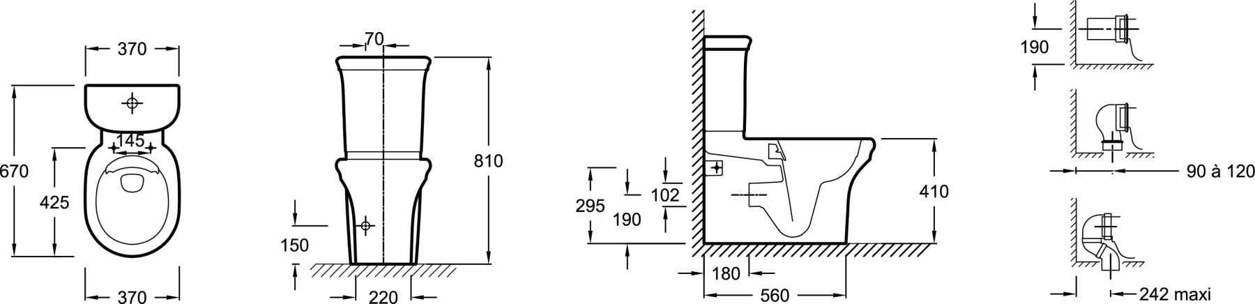 Габариты чаши унитаза (ШхВхД): 370х410х670 мм.