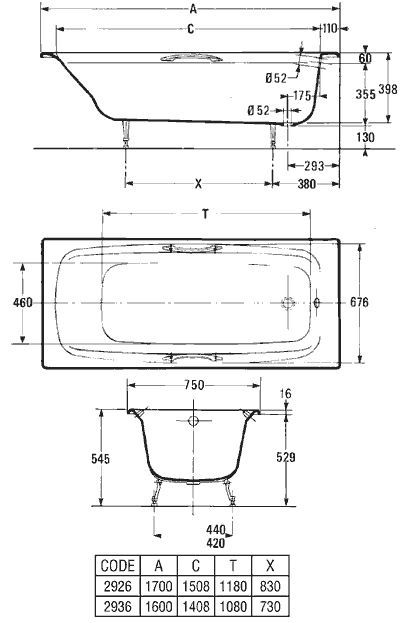 Чугунная ванна Jacob Delafon DIAPASON E2937-00 DIAPASON без отверстий для ручекКОЛЛЕКЦИЯ :DIAPASON