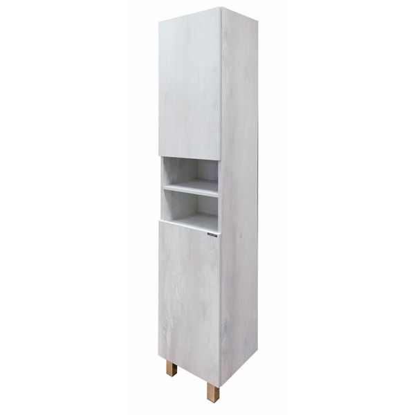Напольная шкаф-колонна отличное решение для хранения разных предметов необходимых в ванной комнате. За дверцами по одной горизонтальной полке. Петли створок можно установить как справа, так и слева