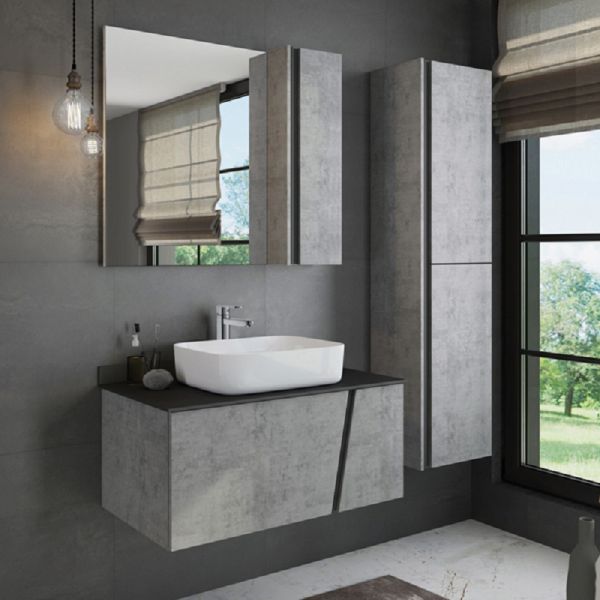 COMFORTY Тумба-умывальник Эдинбург-90 бетон светлый с черной столешницей купить