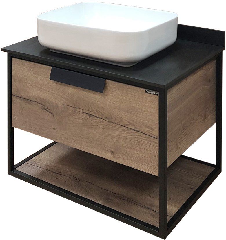 Comforty Тумба-умывальник "Кёльн-75" дуб темный с черной столешницей с раковиной Comforty T-Y9378