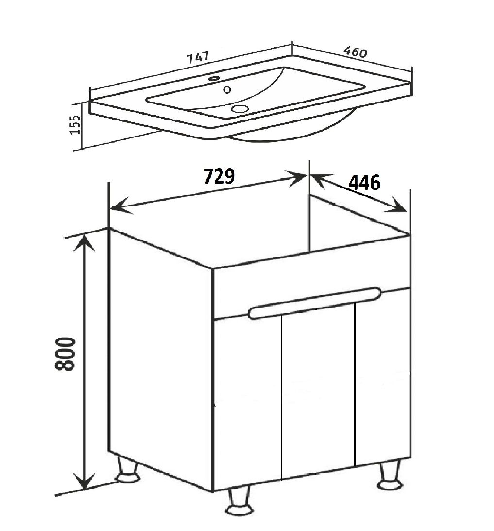Тумба под умывальник напольная с тремя распашными дверками. Петли со встроенным доводчиком, ножки хром - 2шт, ножки пластик - 2шт.