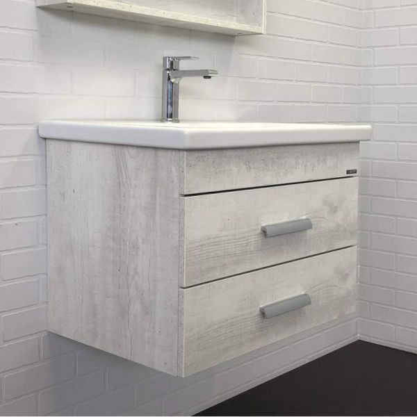 Тумба Comfortу Никосия-70П с раковиной Como 70, дуб белый, 00-00005792Подвесная тумба-умывальник с двумя выкатными ящиками. Ящики оснащены доводчиками для плавного закрывания. Корпус и фасады тумбы из влагостойкого ДСП актуальной фактуры "Дуб белый" с имитацией натурального дерева. Тумба укомплектована прямоугольной раковиной из санитарного фарфора и четырьмя ножками.Основные характеристики:Монтаж: подвесной