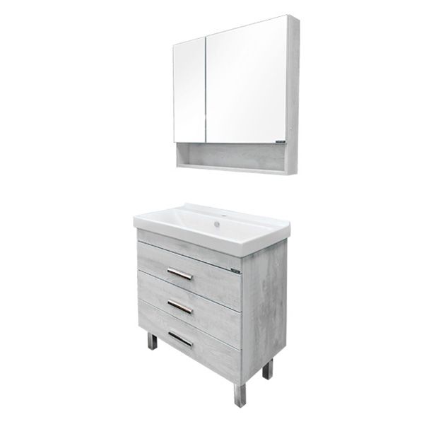 Название: Тумба-умывальник Артикул: Никосия 80Н Варианты цвета корпуса и фасадов: Дуб белый Материал корпуса и фасадов: влагостойкое ЛДСП Габариты (ШхВхГ): 800*860*450 мм Комплектация: раковина Fest 80 (санитарный фарфор) Напольная тумба с тремя выдвижными ящиками оснащенными системой плавного закрывания. Оригинальные эргономичные металлические ручки.