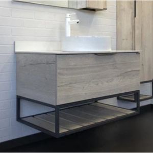 COMFORTY Тумба-умывальник Порто 90 00-00009322Подвесная тумба-умывальник в стиле лофт Порто 90 с одним широким ящиком оснащенным системой плавного закрывания и нижней полкой открытого хранения для полотенец. В основе тумбы - каркас из стального профиля окрашенный в цвет графит серый.