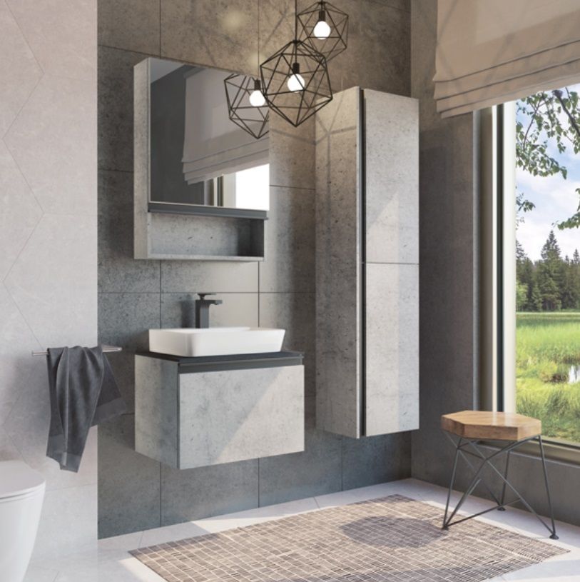 Зеркальный шкаф Comfortу Эдинбург-60, 00-00002043, без подсветки, бетон светлыйЗеркальный шкаф