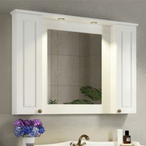 Название: Зеркало шкаф Артикул: Палермо 120 Цвет корпуса и фасада: Белый глянец Материал корпуса: влагостойкое ЛДСП Материал фасада: МДФ Габариты (ШхВхГ): 1138*860*150 мм Зеркальное высококачественное полотно с амальгамой на основе серебра. Фасады мебельных элементов окрашены белой глянцевой эмалью и оснащены механизмами плавного закрывания. За створками по две полки. Верхний фриз оборудован двумя галогеновыми светильниками и выключателем.