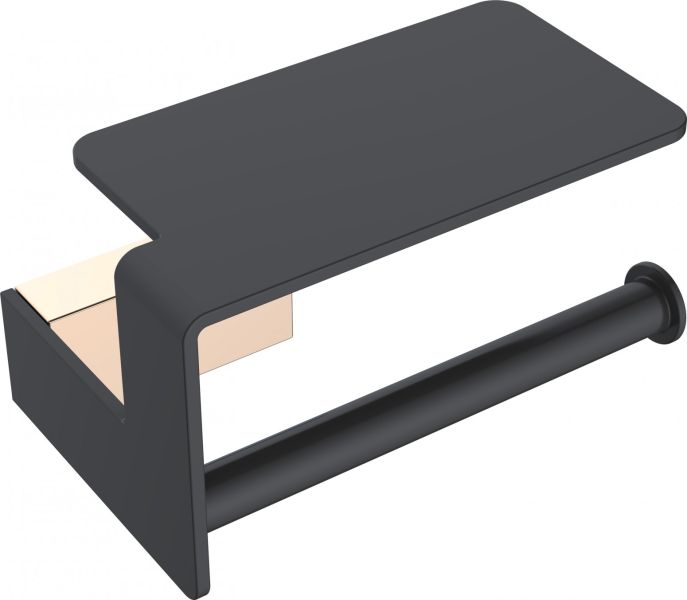 Держатель для туалетной бумаги Boheme Q с полкой чёрный/золото 10941-G-B