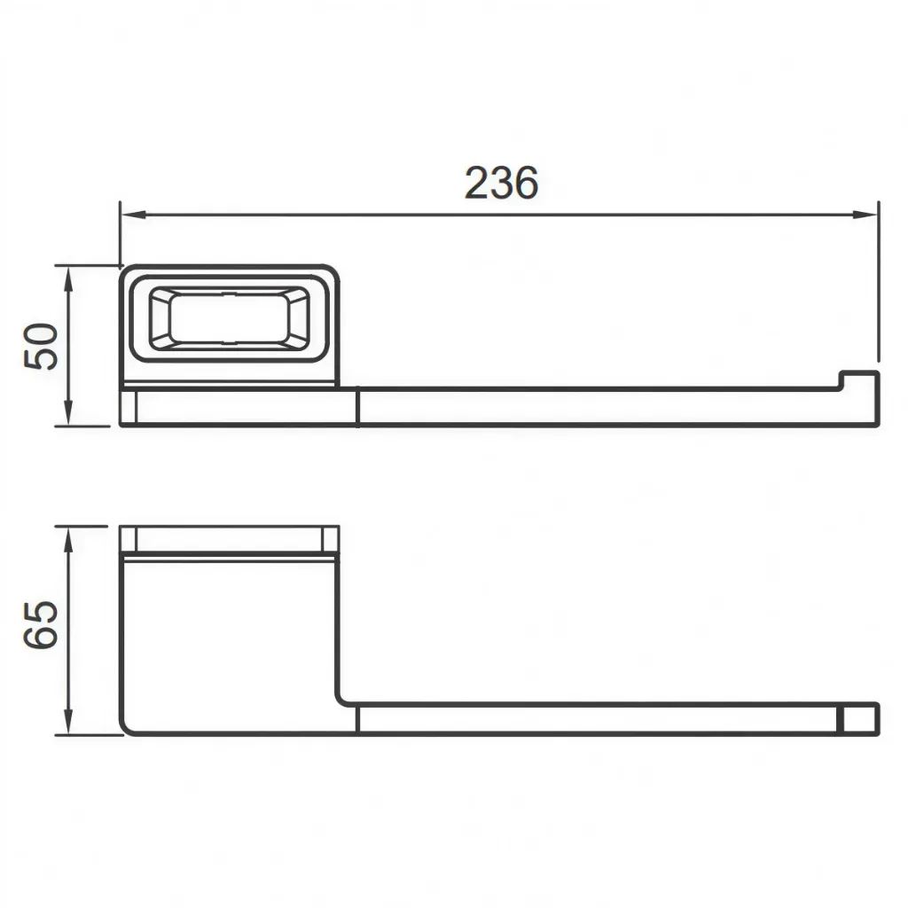 Держатель для туалетной бумаги выполнен в современном хромированном дизайне, который легко впишется в любой интерьер. Благодаря компактным размерам (высота 5.0 см, ширина 6.5 см, длина 23.5 см), он не займет много места и будет гармонично смотреться в любом помещении.