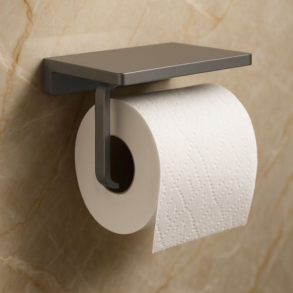 Держатель туалетной бумаги в стиле вороненой стали — ваш современный помощник в ванной. Полочка для телефона или очков всегда держит вещи под рукой, антиследовое покрытие сохраняет чистоту и блеск. Монтаж прост. Служит долгие годы.