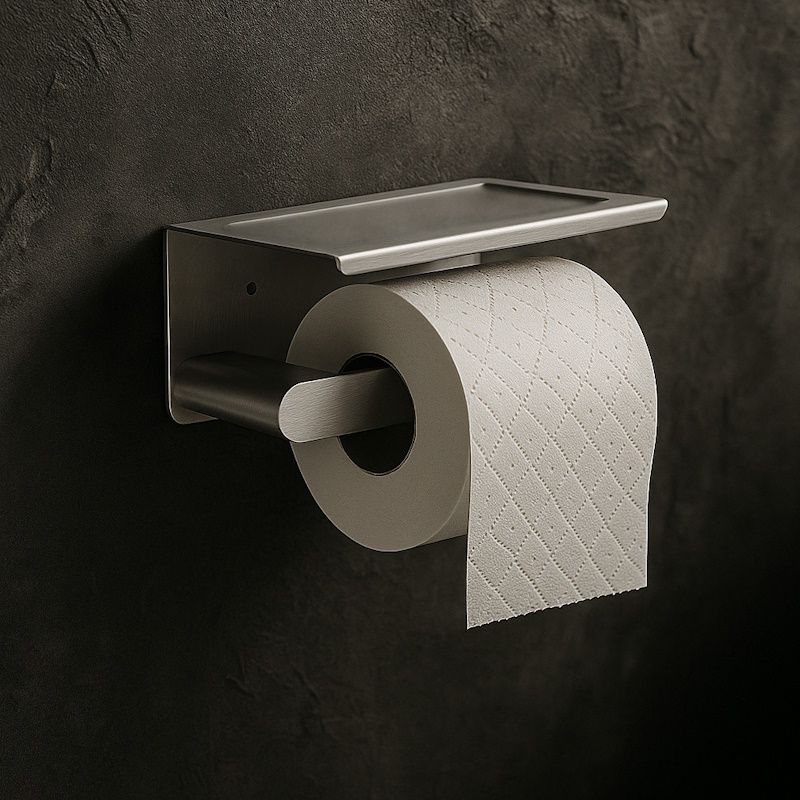Держатель для туалетной бумаги из матовой стали — удобство и стиль в одном аксессуаре. Полочка для смартфона или мелочей, антиследовое покрытие, монтаж за минуты. Идеально для современного интерьера.