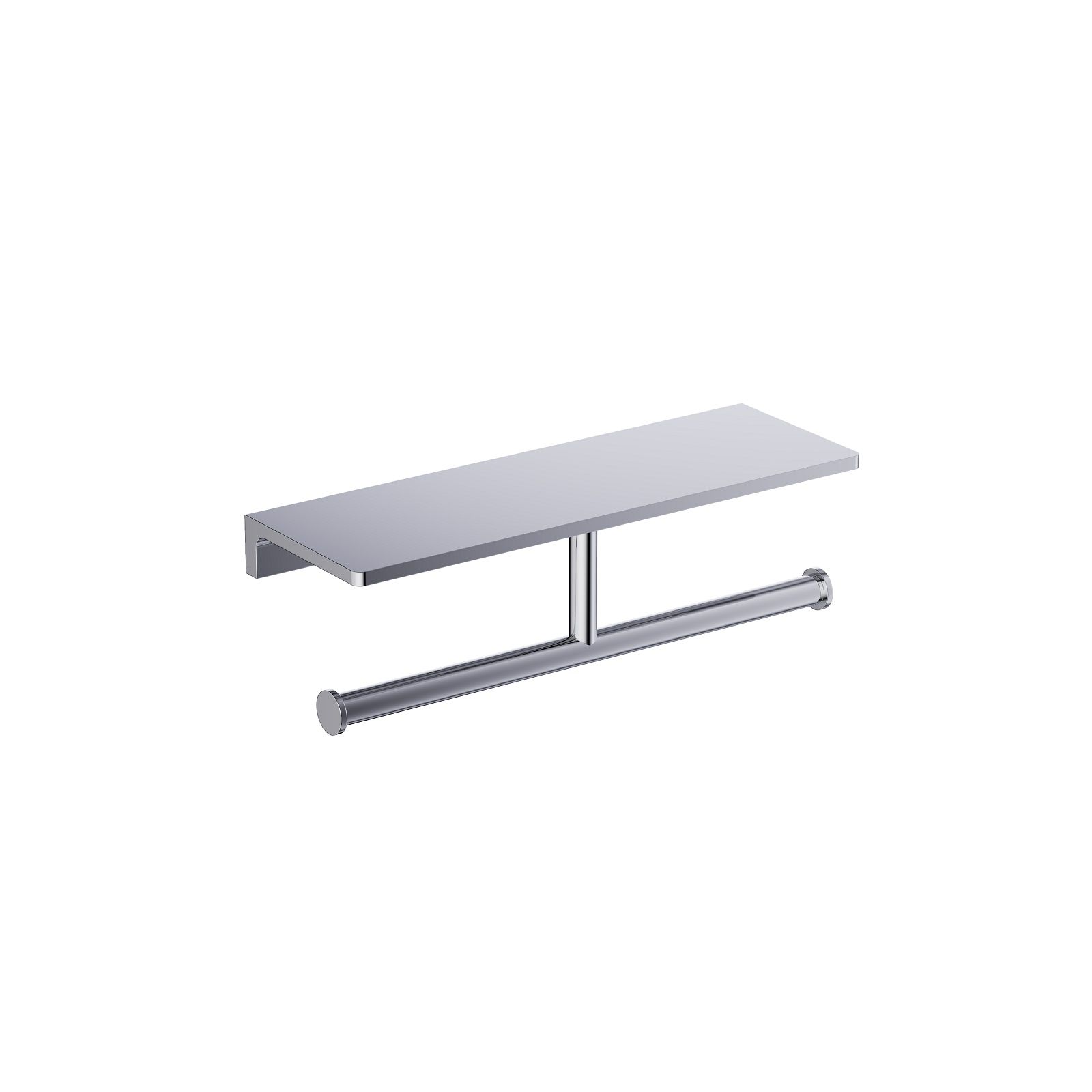 Красивая геометрия, виртуозность исполнения, хромированное покрытие будет отлично смотреться в интерьере хай-тек, loft или минимализм. Размещение сразу двух необходимых предметов на одном девайсе выглядит удобно и очень логично.Держатель туалетной бумаги с полочкой представляет собой прочную настенную конструкцию. Модель эргономична – продумана каждая деталь. Например, рулон туалетной бумаги не срывается с держателя, если вы случайно приложили большее усилие и чуть сильнее потянули за край.