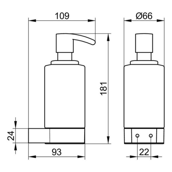 Ширина 66 мм, высота 183 мл