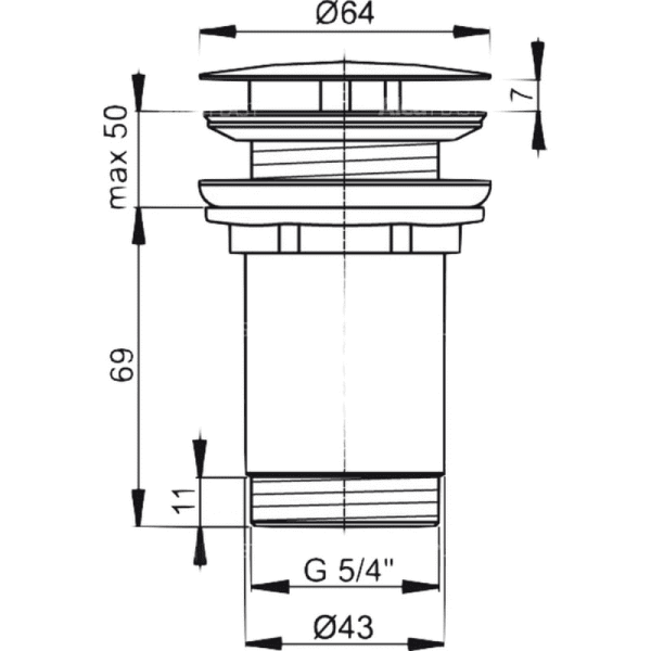 Донный клапан для раковины AlcaPlast клик-клак 5/4" цельнометаллический с большой пробкой A396