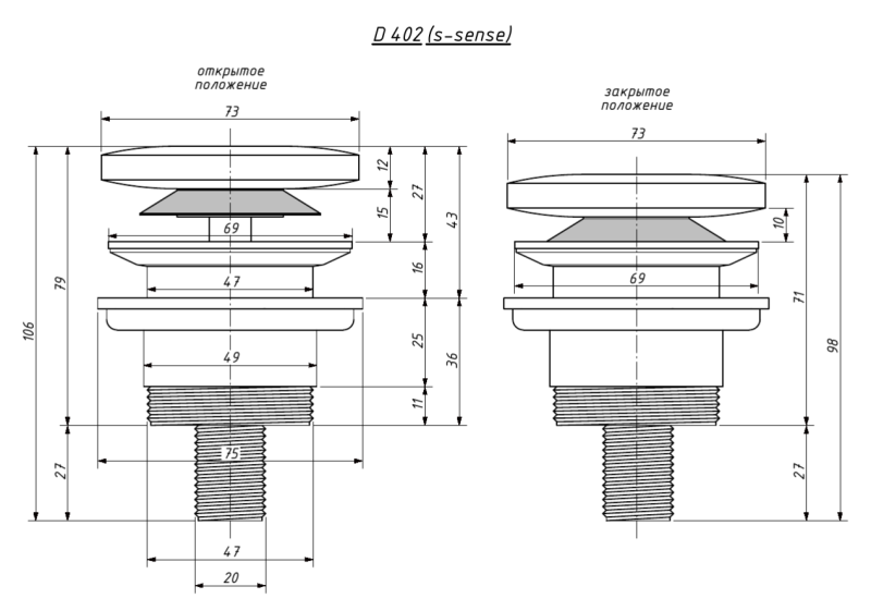 Лаконичный донный клапан модификации Click-Clack. Конструкция изделия спроектирована таким образом, чтобы всего одним нажатием можно было закрыть или открыть сливное отверстие. Это очень удобно и не требует дополнительных усилий.