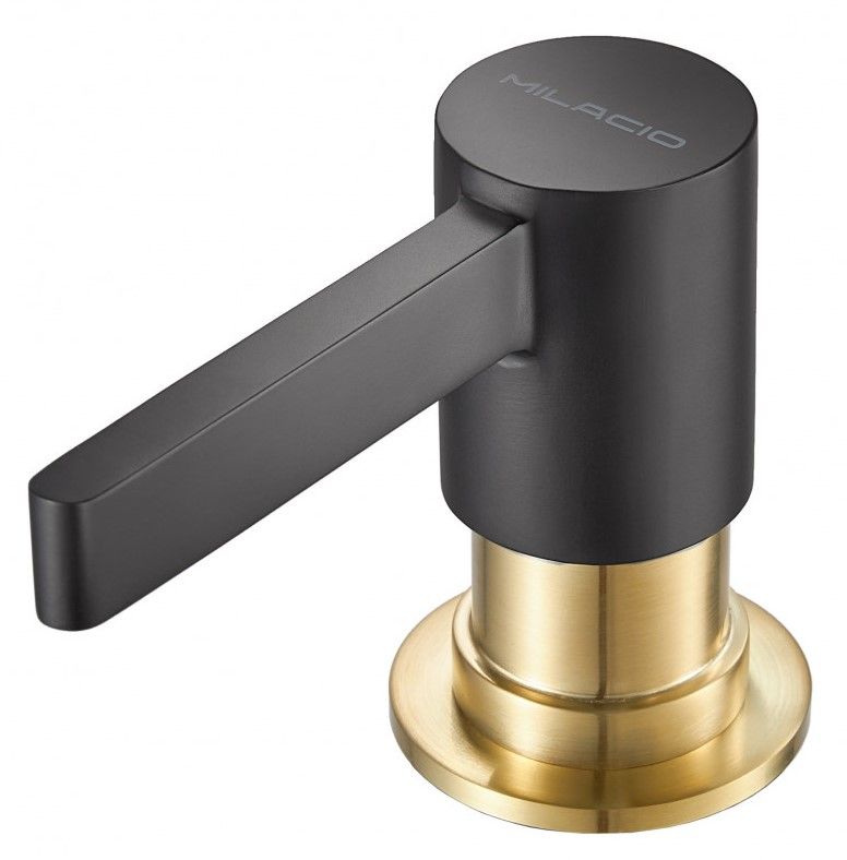 Механический врезной дозатор для мыла и моющего средства MILACIO MCU.933.BGD, выполненный в сочетании золотого цвета и черного матового — стильное и новое решение которое станет яркой изюминкой в вашем интерьере.