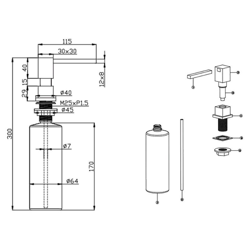 Дозатор для моющего средства Alveus Kork Chr 1129080 ХромВам надоели бесконечные разводы и следы от бутылочек с жидким мылом и моющим средством? Тогда встраиваемый дозатор от Alveus - это то, что Вам нужно. Практичный, современный дизайн. Легко заправляется сверху; диаметр отверстия под дозатор 28-35 мм; вместительная колба; надежный механизм крепления. Благородный полуматовый оттенок дозаторов Monarch Collection идеально сочетается с мойкой в PVD покрытии.