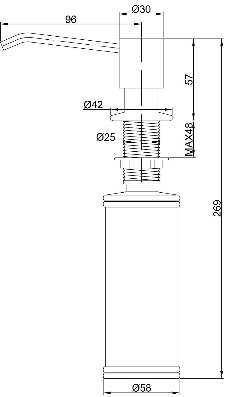 Дозатор для кухни и ванной, артикул D002-GДозатор для кухни или ванной серии Rein, встраиваемый, объемом 350 мл, матовая поверхность, изготовлен из латуни и пластика.