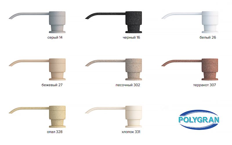 Дозатор Polygran не только великолепное украшение как дополнение к кухонной мойке, но и превосходное функциональное решение любой кухни. Коллекция дозаторов выполнена в эксклюзивном дизайнерском решении в лучших традициях современного стиля.Polygran предлагает безупречное, сочетание материалов высокого качества, с абсолютным отсутствием вредных для здоровья веществ. Россия родина бренда Polygran, вся продукция производится со строгим соблюдением всех стандартов, благодаря чему можно быть абсолютно уверенным в надежности и высоком качестве. Дозатор Polygran создаст уют и комфорт в любом дизайнерском решении, и кухня обретет неповторимый элемент интерьера.