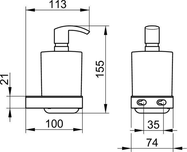 Keuco Smart.2 14752 010100 Дозатор для жидкого мыла подвесной (хром). Непрозрачный пластик, матовый, в комплекте с держателем и насосиком, объем: прибл. 200 мл, дозировочный объем: прибл. 0,5 мл/нажатие.