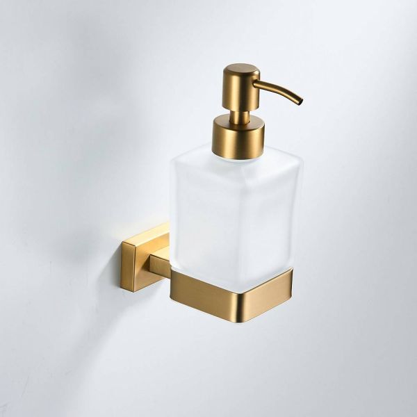 Дозатор жидкого мыла Shevanik SG5644G, золотой сатин.Материал: латунь/стекло.Монтаж: настенный.Форма розетки: прямоугольная.