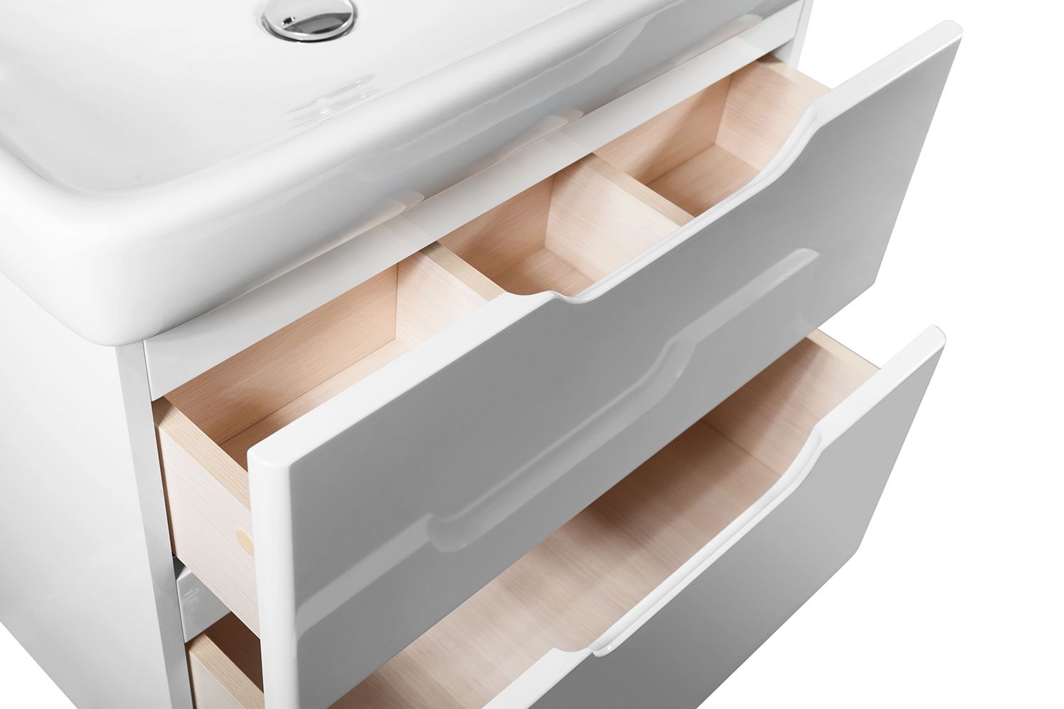 Подвесная коллекция Q под легендарный умывальник Dreja Q Строгий минимализм, лаконичный дизайн, глянцевая поверхность фасада, идеальное качество покраски. В комплект можно докупить зеркальные шкафы, пенал, полупенал. Верхний ящик с органайзером